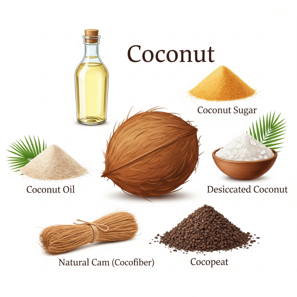 Coconut Sugar: A natural sweetener derived from coconut palm sap.